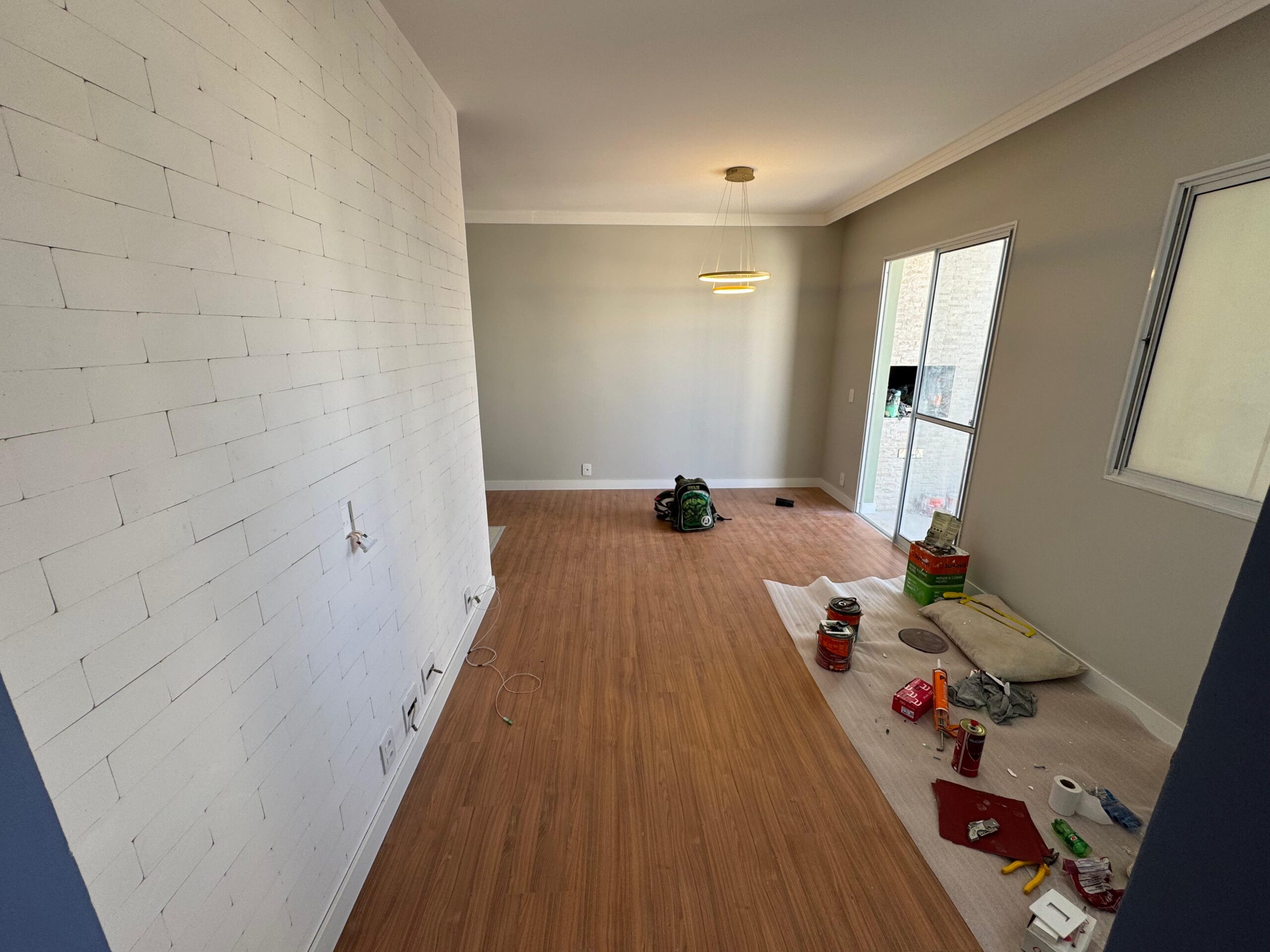 _ 2 Quartos (1 suite) | 2 Banheiros (1 suite) | Sala TV | Sala Jantar | Cozinha | Varanda | Área de Serviço | Hall